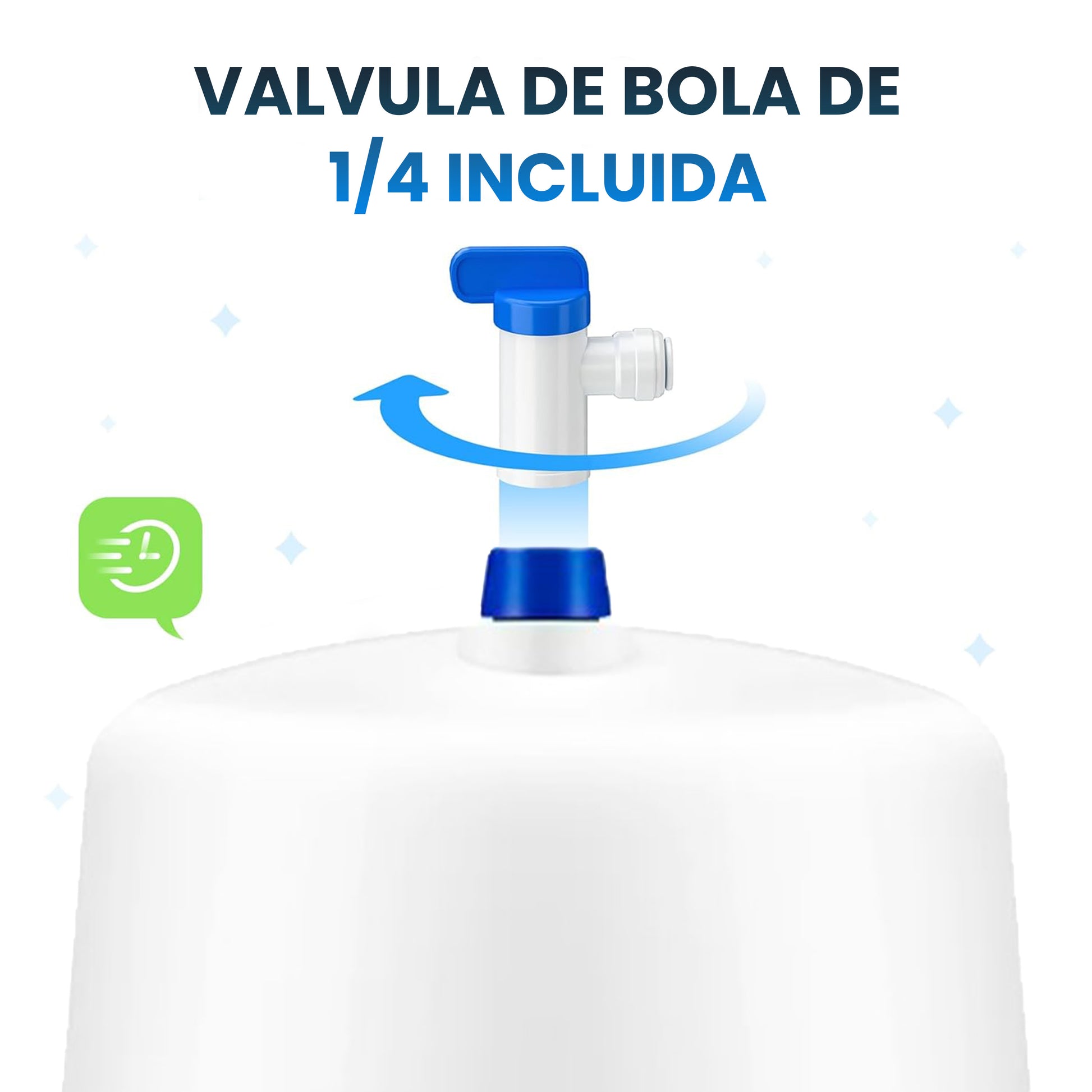 - Compatibilidad Total con Sistemas de Purificación Diseñado específicamente para integración perfecta con equipos de osmosis inversa de 5 etapas, optimizando el rendimiento de todo el sistema de filtrado mientras asegura un suministro constante de agua purificada.